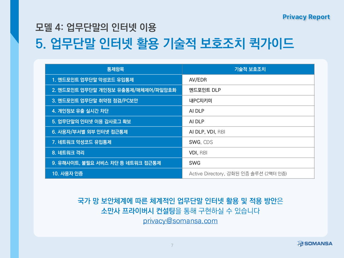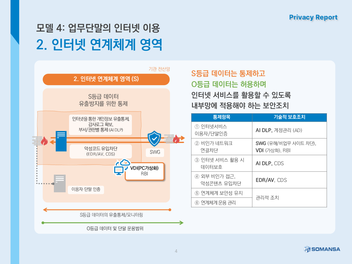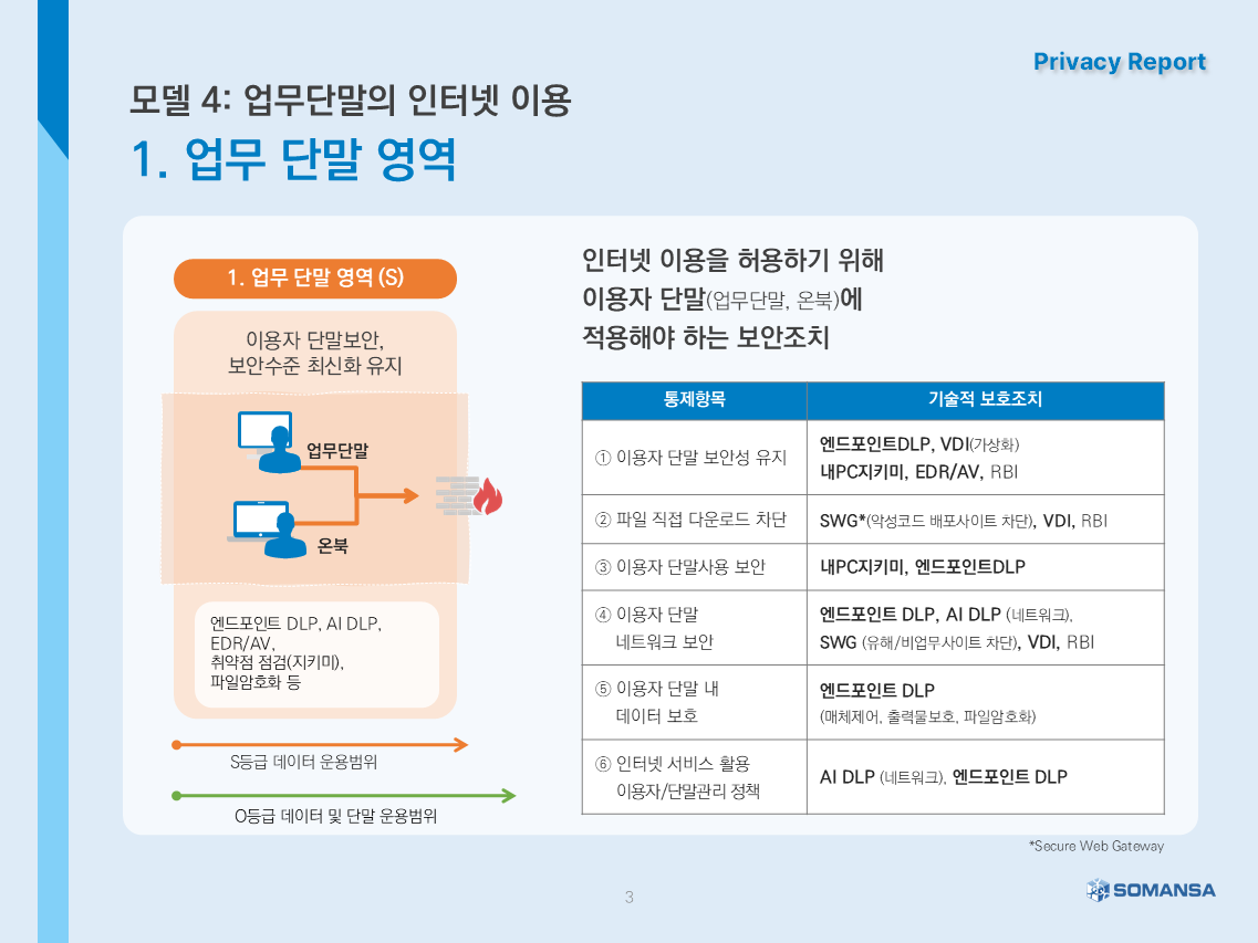 총 11개의 정보 서비스 모델 해설서 중, 소만사는 업무 생산성과 직결되는 단말 보안 기준을 다루는 모델 4에 대해 상세 분석을 진행했습니다.